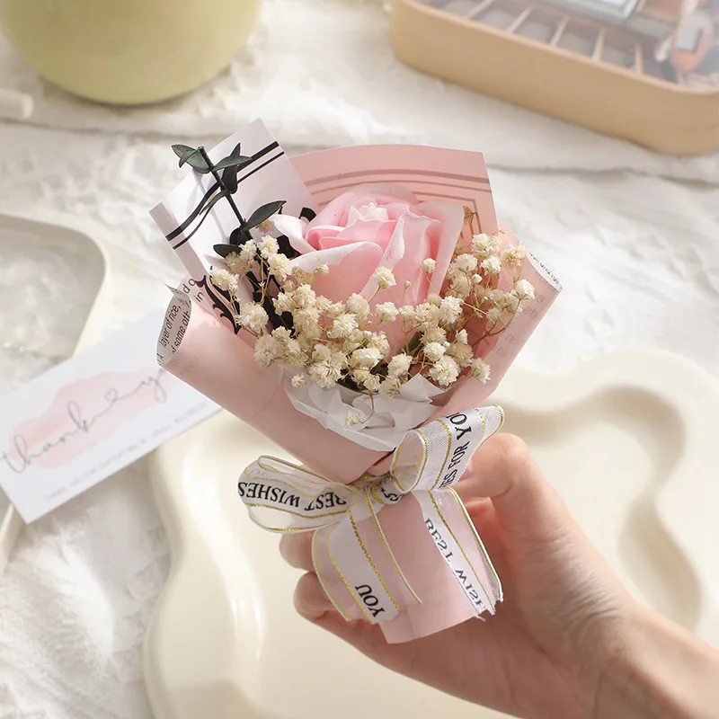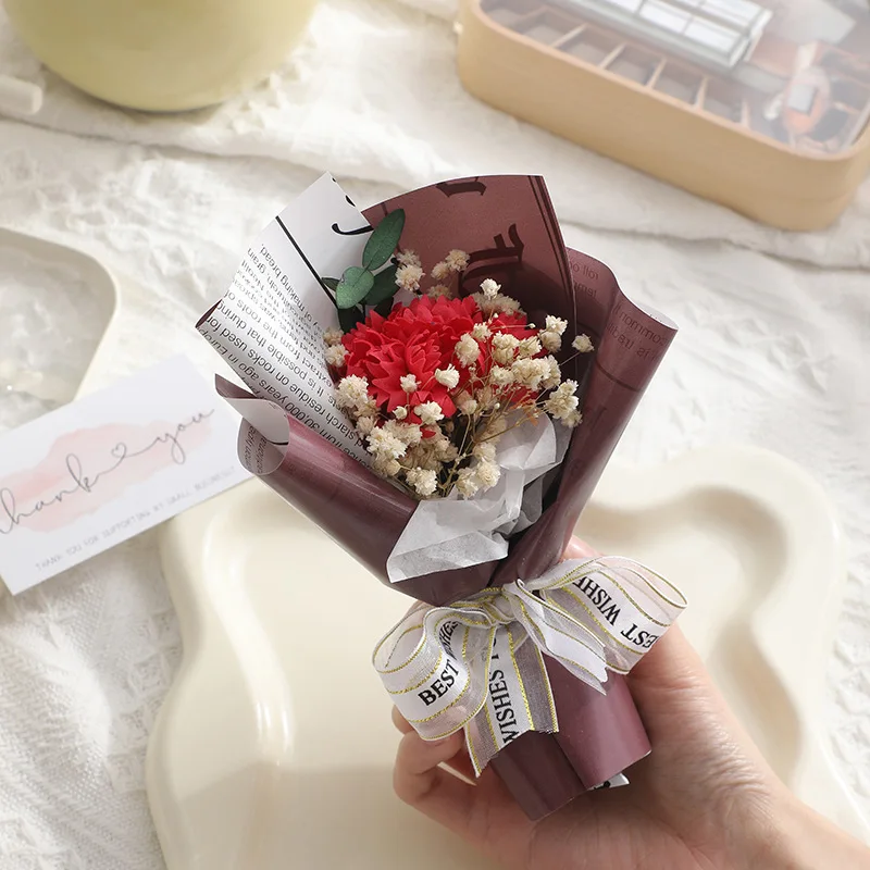 Rose Carnation Preserved Flower Mini Bouquet Soap 2024 Decor Set Supplies Saint Valentines Gift for Mothers Day Her Women